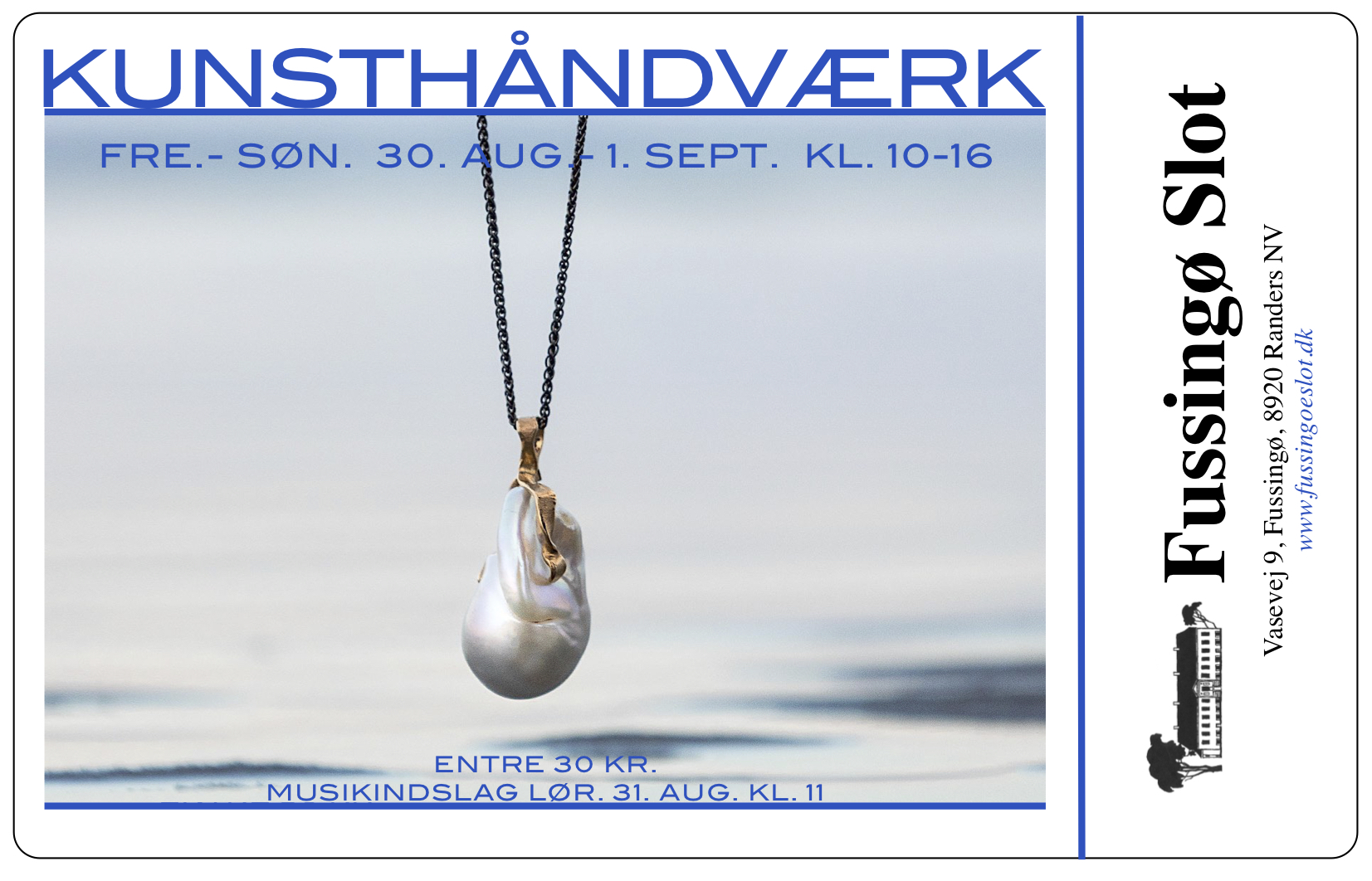 Nyd den berømte Fussingø-kringle til en kop kaffe i det gamle nyrestaurerede slotskøkken, i café-lokalerne eller, hvis vejret er til det, foran slottet med udsigt til den smukke park og Fussingø-skoven. Der er gratis parkering ved slottet. Det koster 30 kr. at besøge udstillingen på Fussingø Slot.